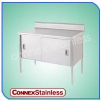 โต๊ะสแตนเลส 2 ชั้น มีตู้เก็บของ