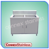 ซิงค์สแตนเลส 2 หลุม มีตู้เก็บของ